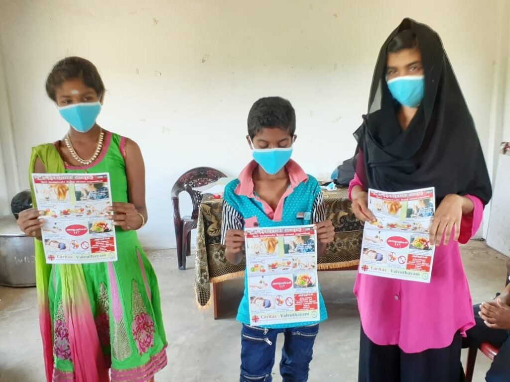 Through Religious Amity programme Caritas-Valvuthayamconducted Covid19 awareness proggramme for children. As schools are reopened after Covid19 pandemic, two awareness programmes organized at Alawakkai on 25.08.2020 where 31Children were participated and another organized on 27.08.2020 at Vaddakkandal village where 46 children were beneficiated. Children learned about the basic aware system of Covid19, importance of hygiene promotion activities and protective measures such as hand washing, social distance and wearing mask. Children were thankful to Caritas-Valvuthayam for thisvaluable awareness programme.